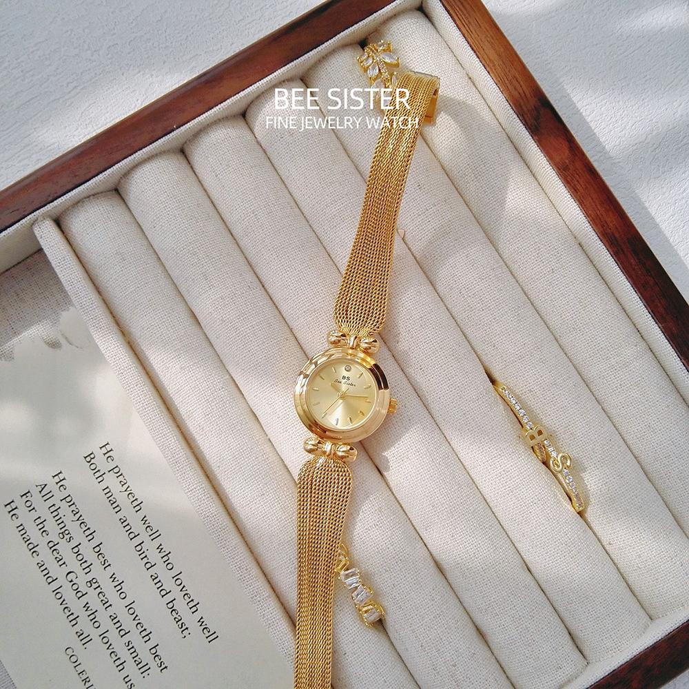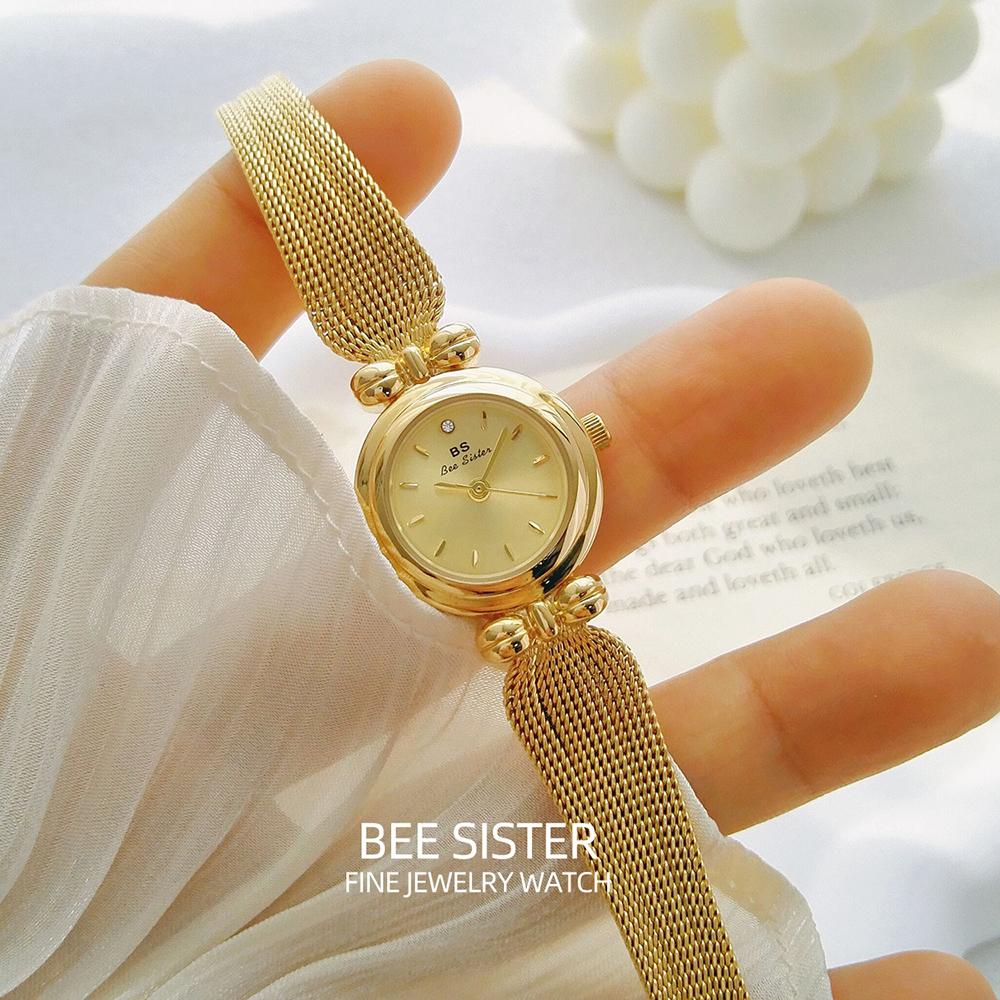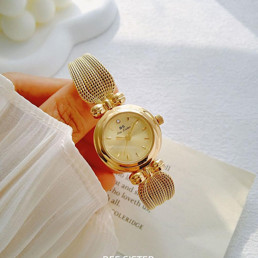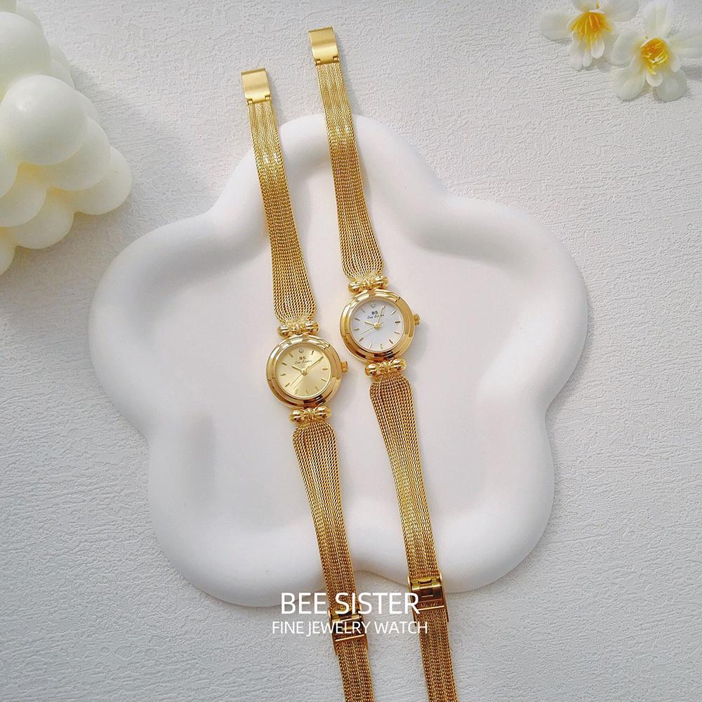 - حزام شبكي ذهبي: ساعات يد نسائية ذهبية مصنوع من الفولاذ المقاوم للصدأ، يوفر راحة وأناقة في الارتداء.